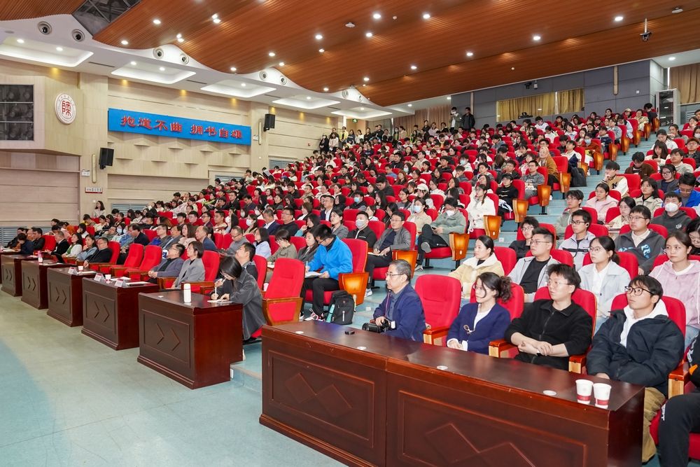 房喻结合个人及团队实践经历,从教育和人才培养、科学研究与创新等方面进行了报告。房喻指出人才培养要更加注重素养能力。他从2024年全球创新指数(GII,Global Innovation Index)谈起,指出新中国成立以来,我国教育的目标已逐步从培养人的“知识、见识”发展到培养人的“素养、能力”,在当前创新驱动背景下,要顺应国家需求,积极探索以科技创新为导向的人才培育创新模式,促使“会读书的人”成为“会创造的人”。他指出,在AI高度发展和广泛应用的背景下,教育的实现方式、教学的范式、教师的作用将发生极大改变乃至变革,他从学习和教育的角度,强调师范大学需适应变革,积极调整人才培养模式,教师应注意从知识传授者转向能力引导者。房喻还以黄昆、袁隆平等学者的奉献精神为例,呼吁要注重培养学生的家国情怀与价值观,建议通过课程设计传递价值观,避免培养“精致的利己主义者”。房喻强调科学研究要大力弘扬求真服务。他分享了《科学:无尽的前沿》等经典论著,介绍了谷歌、亚马逊、华为、比亚迪等企业的高研发投入和研究需求牵引的基础研究典范,强调了基础研究的重要性。他呼吁加大对“无用”科学的支持,关注量子科技、人工智能等前沿领域,警惕“短视的实用主义”和“功利主义”。房喻还讲述了杨振宁、邓稼先、大隅良典、John Bannister Goodenough等国内外知名学者的事迹,鼓励青年学生要拥抱科技,勇于创新,仰望星空,求真创新,志存高远,敢为人先,要富有家国情怀和人类情怀,在从事学习研究的过程中,勇担历史使命,把个人理想自觉融入国家发展伟业之中。最后,房喻结合个人科研与实践经历,以自主研发的爆炸物探测仪、仿生光学材料为例,展示了所在团队的科学策略和价值观。会场气氛热烈,座无虚席。
