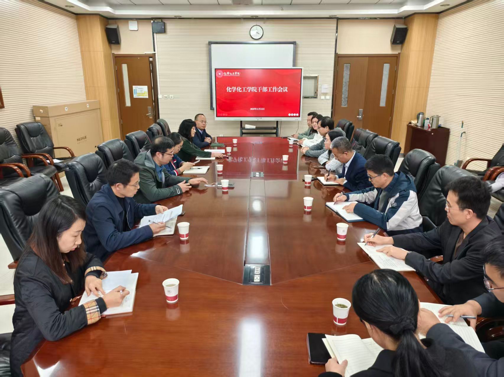 11月12日下午,我院在致知楼1362会议室召开干部工作会议,会议宣布了化学化工学院党委副书记、纪律检查委员会书记的任命决定。党委组织部部长赵丽、副部长胡智勇,我院党政班子成员、教工党支部书记、科级干部,学工组、党政办工作人员参加会议。会议由胡智勇主持。