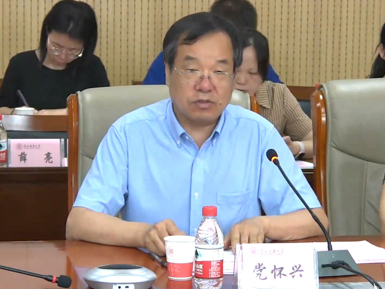 党怀兴副校长指出,教育部西部高校化学专业(师范)虚拟教研室由房喻院士担任教研室主任,是重视教学的明证,是人才培养的万幸。科研和教学是一枚硬币的两面,大学教师应当同时扮演好这两个方面的角色。由院士亲自抓教学,以科研转化教学,是陕西师范大学化学学科的荣幸,也是所有虚拟教研室成员单位共同学习的典范。信息化时代,国家提倡虚拟仿真、虚拟教学、虚拟教研室,这是信息化时代一种新的教育教学方式。在房院士的带领下,必然使虚拟教研室在课程建设、教材建设、学生创新创业能力培养等方面,探索出新的方式。特别探索在信息化时代、互联网+概念下新的教研形态,从而不断的积累新的教学成果。尺有所短寸有所长,不同的高校之间应当互相学习、合作共赢、资源共享。陕西师范大学利用其中部地区的地理优势,应当发挥东部和西部地区的衔接和桥梁作用,从而使得更多的高校参与到教育部西部高校化学专业(师范)虚拟教研室中来。