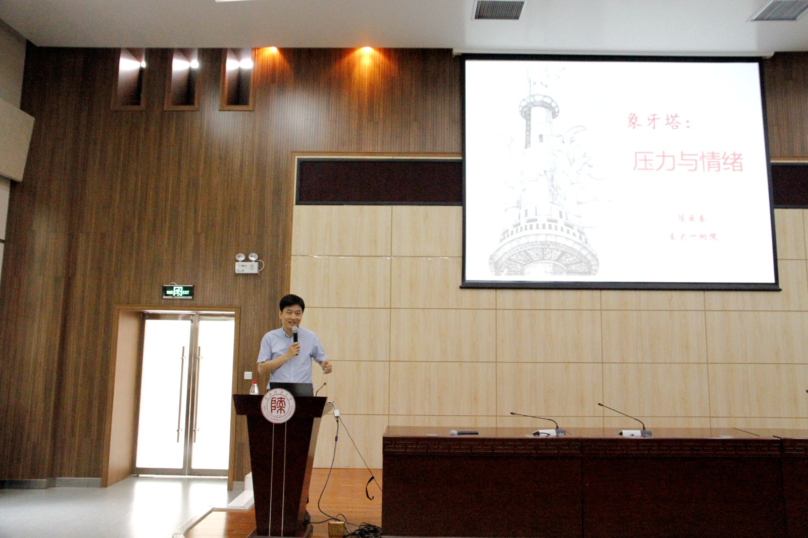 为了有效缓解我院师生的工作和学习压力,掌握自我减压的方法和途径,使老师和同学们以更加乐观、积极的心态投入学习和科研工作,6月9日下午,交大一附院精神心理科主任陈云春教授应邀为我院师生带来“象牙塔:压力与情绪”心理健康讲座。讲座由党委书记吴晋峰主持,长安校区师生代表共计两百余人参加了此次讲座。