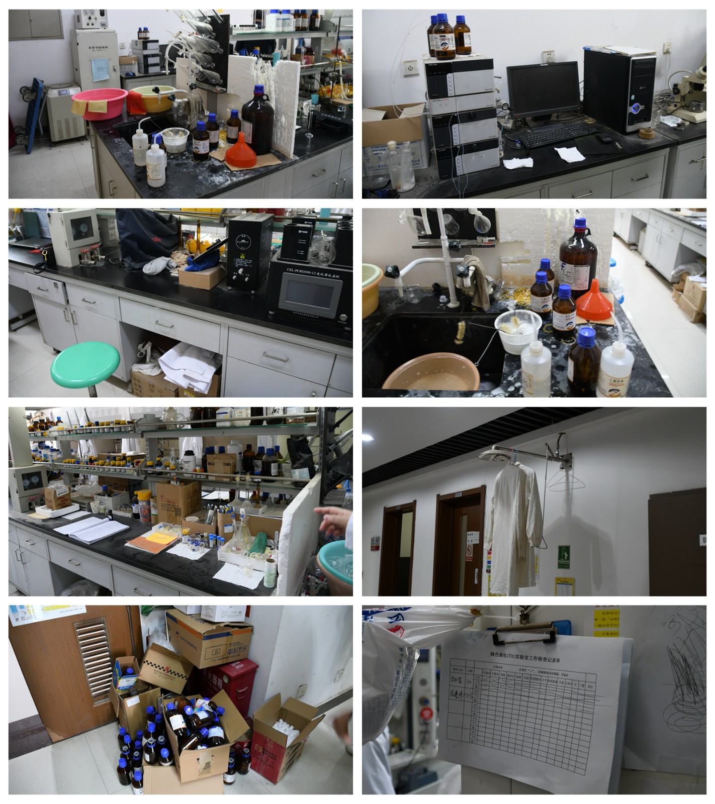 检查组采取逐个房间过、逐个点位查的方式,通过实地察看、现场操作,对照实验室安全检查项目表内容进行细致核查。检查中发现,绝大多数实验室对安全管理比较重视,符合实验室安全管理相关标准,尤其是1750实验室在日常安全管理方面有明确的记录,安全责任人每日记录着《离开实验室前安全检查对照表》,确保本实验室无安全隐患存在。但是在检查过程中还存在部分实验室卫生打扫不彻底、物品摆放凌乱,试剂瓶未贴标签,液体瓶盖未拧紧或敞口放置,未贴高温标识,气体钢瓶未固定,未安装气体报警器,插线板不标准,个人防护不到位等问题。针对检查发现的问题,检查组详细记录,对实验室所在人员进行教育并要求对存在的问题立即整改。通过进一步自查自纠、整改提升,促进师生重视实验室安全问题,有利于落实学校、学院相关规章制度,做到实验室安全托底,切实保障师生生命安全和身体健康,确保科研教学有序进行。