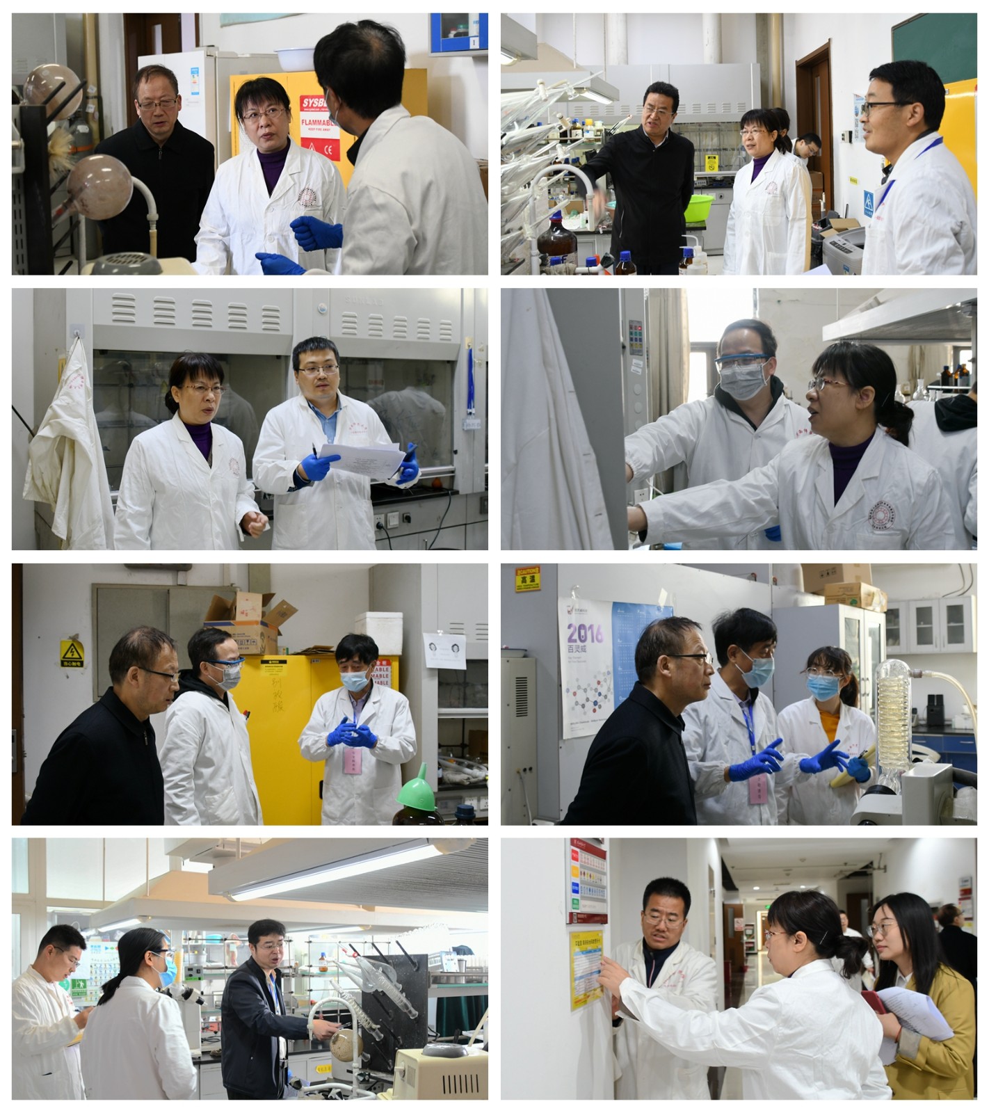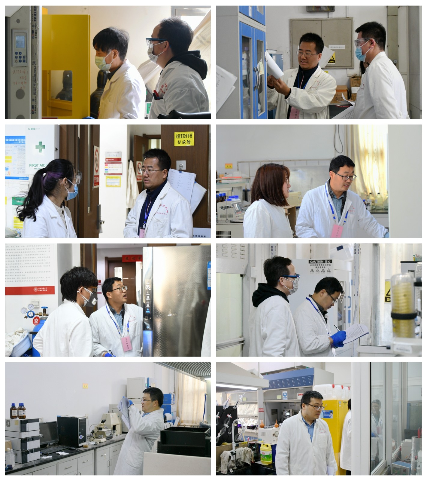 为贯彻落实党中央、国务院关于安全生产工作的系列重要指示精神,确保常态化新冠肺炎疫情防控下全校实验室有序运行,保障广大师生人身安全和校园稳定,根据《关于组织开展2021年度实验室安全自查自纠工作的通知》要求,结合《化学化工学院安全工作条例(修改稿)》规定,4月30日上午,学院党委书记吴晋峰,学院安全工作委员会副主任、应用表面与胶体化学教育部重点实验室副主任刘成辉,安全工作委员会副主任、行政副院长肖新军,安全工作委员会副主任、应用表面与胶体化学教育部重点实验室副主任严军林以及安全工作委员会副主任杨文玉带队对学院七层实验室及公共区域进行了安全检查。检查组成员包括实验中心办公室和学院办公室。