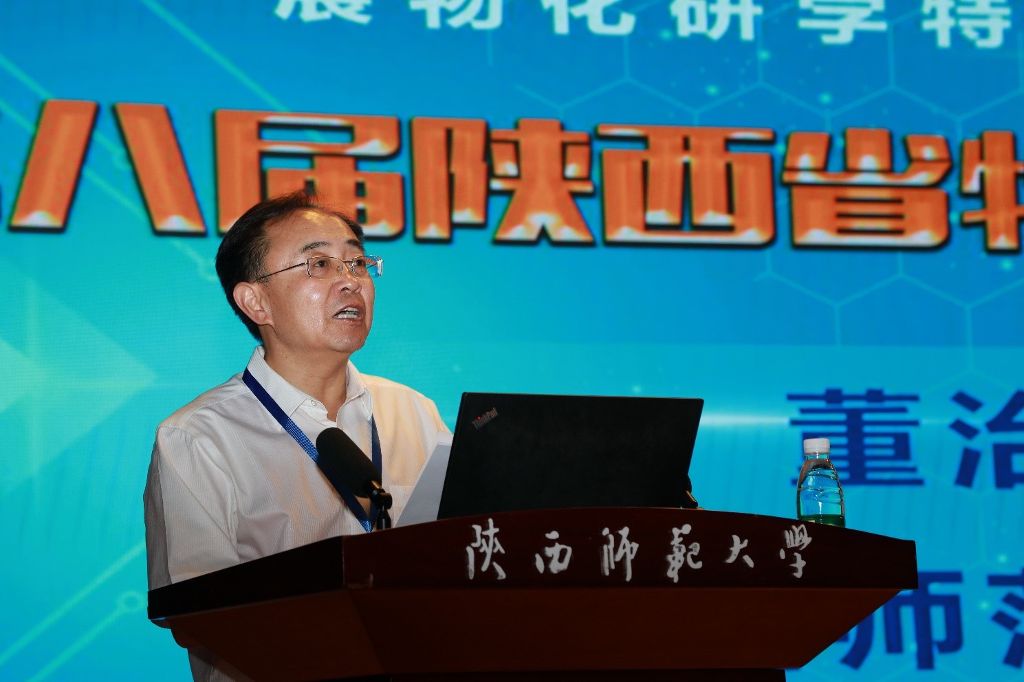 陕西师范大学副校长董治宝教授代表学校领导出席开幕式并致辞。董校长首先对来自全省各高校和科研单位的参会专家学者表示欢迎,并简要介绍了陕西师范大学和我校化学及物理化学学科的情况。陕西省化学会理事长、西北大学原副校长王尧宇教授介绍了陕西省化学会的组织架构和发展现状,勉励化学人在已取得的成绩基础上再接再厉,争取为本地区和国家经济社会发展做出更大贡献。开幕式由化学化工学院院长薛东教授主持。北京大学张锦院士、我校原校长、陕西省化学会名誉理事长和物理化学专业委员会主任房喻教授、西安交通大学赵翔教授、西北工业大学苏克和教授、西北大学高胜利教授、陕西师范大学刘宗怀教授、白俊峰教授、研究生院院长陈新兵教授、校工会主席高玲香教授、材料科学与工程学院副院长雷志斌教授、化学化工学院党委书记吴晋峰教授、副院长焦桓、丁立平、刘成辉、肖新军、应用表面与胶体化学教育部重点实验室严军林副主任等领导和专家出席开幕式。