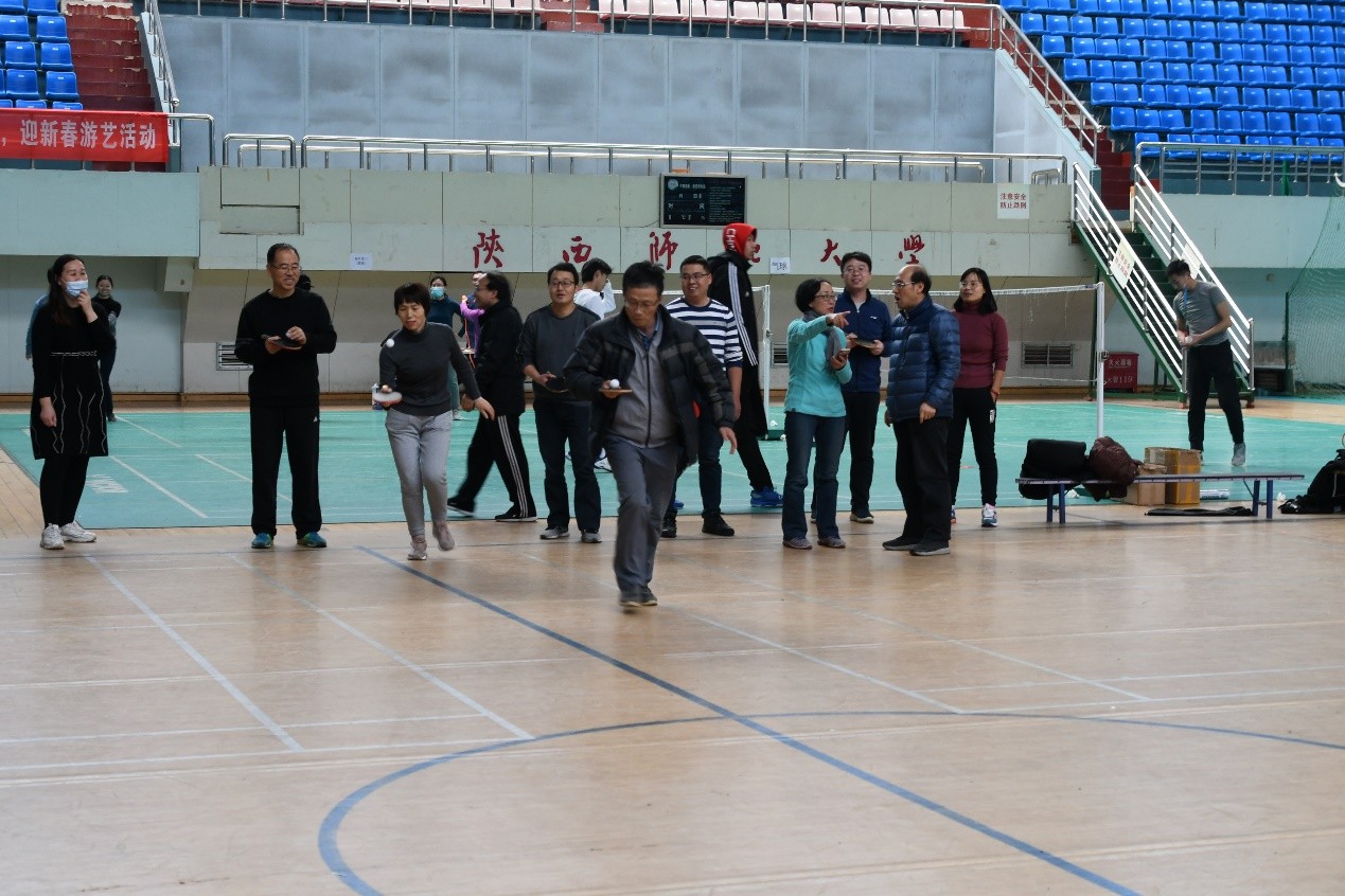 在2021年即将到来之际,化学化工学院工会本着丰富学院教师精神文化生活,增强教师们的健康运动、健康生活和健康科研的常态意识,提升学院的凝聚力, 12月30日下午,在长安校区上林体育馆举行“庆元旦,迎新春”欢乐游艺活动,教职工们积极踊跃参加了本次活动。开幕式上,工会主席张国防教授介绍了本次活动的背景意义、活动筹备情况以及各游戏项目规则,随后宣布游艺活动正式开始。