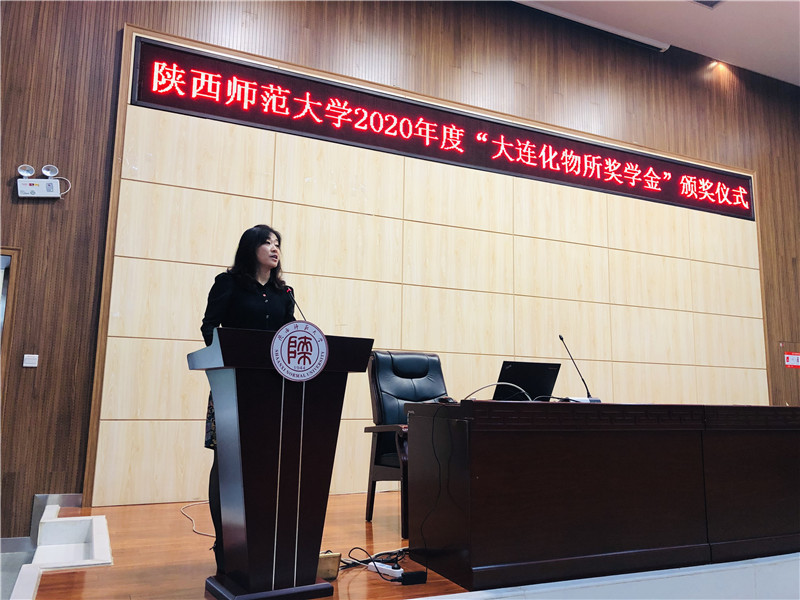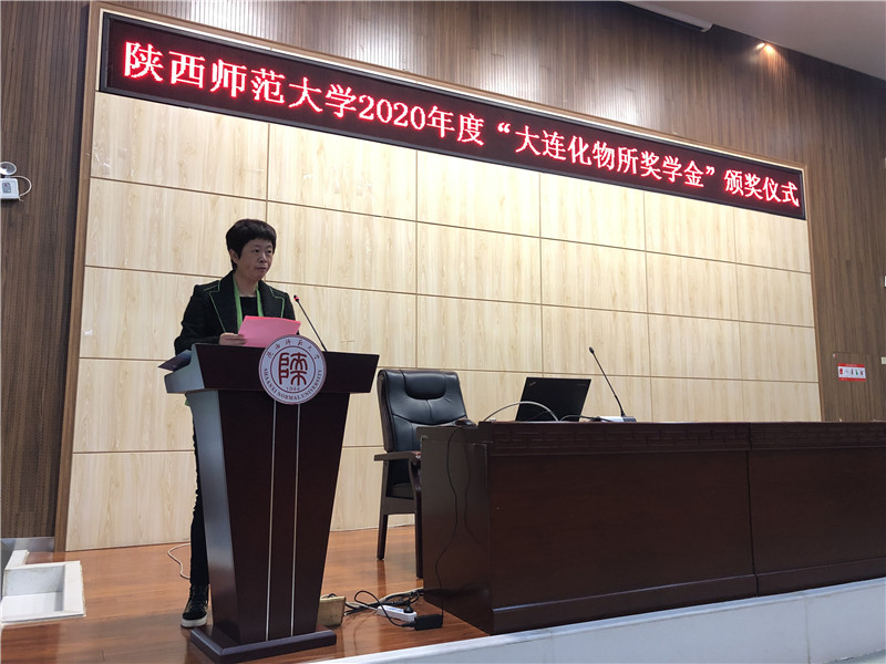 随后,熊博晖研究员宣读了《关于颁发2020年度“大连化物所奖学金”的决定》。她对获奖学生表示了祝贺,并勉励获奖同学再接再厉,不断进步,同时也希望化院学生以他们为榜样,做一个立志高远、勤奋学习、积极进取的优秀大学生。