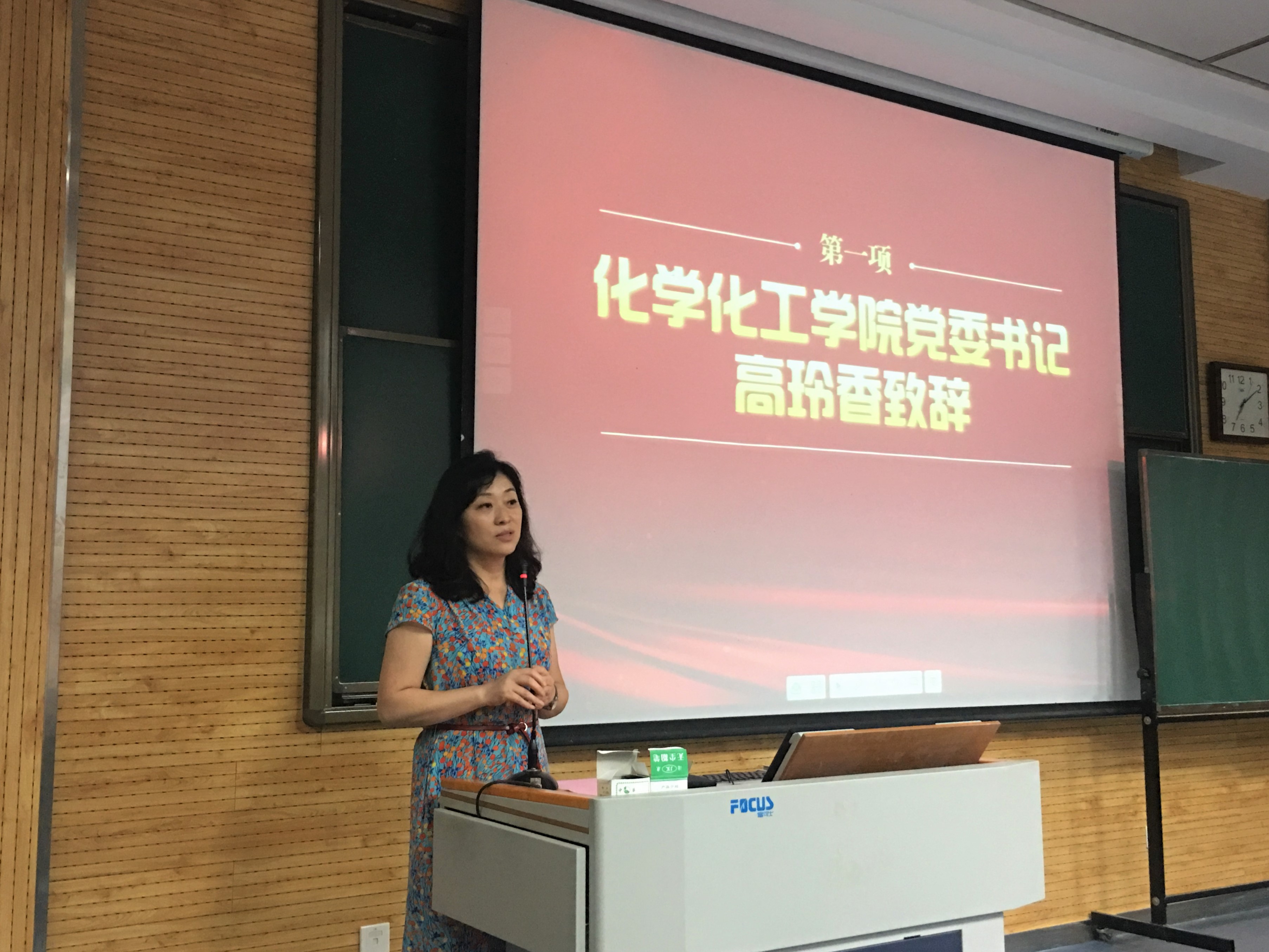 漆红兰老师以“分析化学团队的责任与担当”为题,从分析化学的学科背景、教学团队、科研团队及重点实验室四个方面,全面地介绍了分析化学团队的历史沿革和学科发展走向,并表示将坚定不移地传承老一辈教育者孜孜不倦、追求真理的工匠精神,努力践行为党育人、为国育才的初心使命。获奖学生代表白丽娟发表感言,她表达了对学院老师们的感谢,并呼吁同学们以求真务实、严谨科学的态度锤炼本领,将爱国之志化为报国之行,做追求卓越的新时代青年。