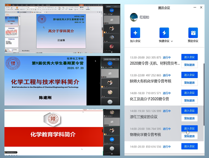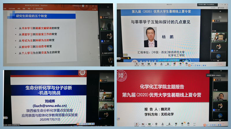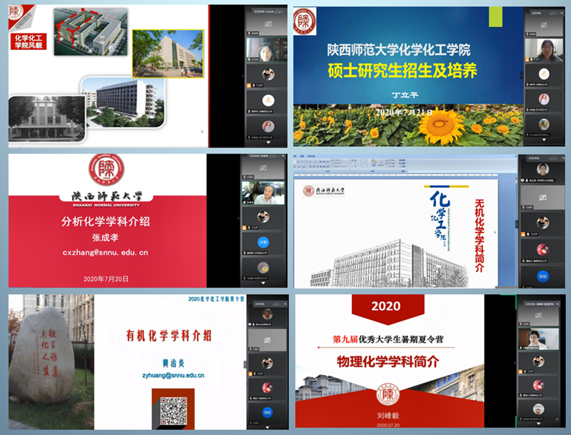 为提高国家基础科学(化学类)人才培养的水平、加强化学和化工人才培养基地学生之间的交流与联系,2020年7月20日至7月21日,由陕西师范大学化学化工学院主办的第九届优秀大学生夏令营在线上举行,来自全国六十所高校的120多名大学生参加了本次线上夏令营。