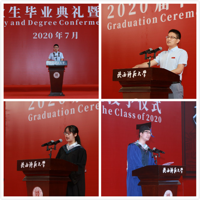 学院党委副书记王晓主持毕业典礼。他谈到,一场前所未有的疫情大考,让我们度过史上最长的寒假和最具挑战的毕业季。难以回校完成论文的望眼欲穿、揣测答辩形式的忐忑不安、校园封闭带来的诸多不便、毕业典礼是否举行牵动着大家的心弦,使2020年这个毕业季,变得更为特殊、难以忘记。虽历经不易,但今天我们终于相聚于此,隆重举行化学化工学院2020届毕业生毕业典礼暨学位授予仪式,共同见证、分享这一荣光时刻,让同学们拥有一场自九月走来,于七月离开,走过于懵懂无畏、成长于意气风发、成熟于淡定内敛、收获于硕果累累,有始有终、不留遗憾的完整大学记忆。他向圆满完成学业的2020届全体毕业生同学致以最热烈的祝贺,向一直默默为毕业生成长燃灯引航的老师、父母,致以崇高的敬意。