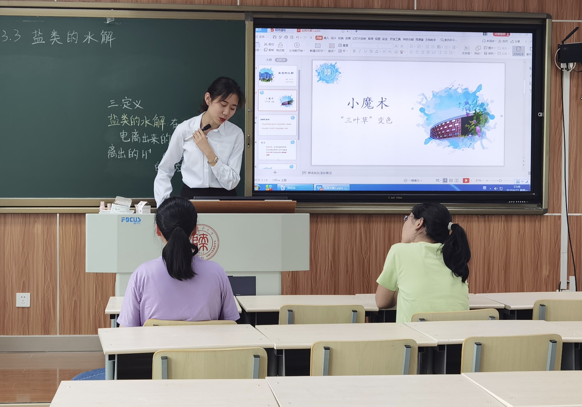 第十一届“红烛杯”公费师范生教育教学能力大赛历时1个多月,经历了学院初赛、学校复赛和决赛三个阶段。决赛正值高考期间,且受到疫情影响,故本次比赛全部采用线上钉钉会议视频的形式进行。大赛分为两场进行,包含书写测试、教学设计、即席演讲、模拟授课、说课和评委点评六个环节,全面考察选手的知识积累、创新设计以及临场应变等能力。书写测试测试中我院参赛选手李聪聪、李越、孙小溪、任泉先、余昕海、刘界良均取得了优异的成绩,其中李聪聪获得理科组书写测试第一名、全校第二名。在模拟授课和即席演讲中我院选手亦有出色表现。在准备时间只有150分钟的情况下,选手们完成了教学设计、即席演讲准备、模拟授课准备以及说课稿撰写,通过《氯水成分的探究》、《乙醇的分子结构与部分化学性质》、《原电池的构成条件》等课程的讲授得到了评委的认可。