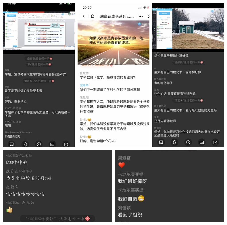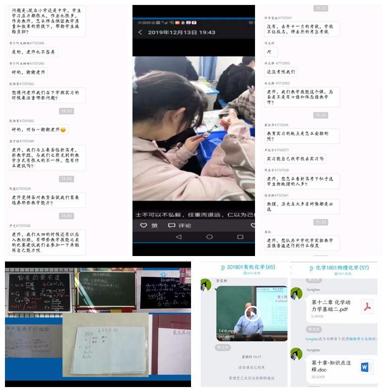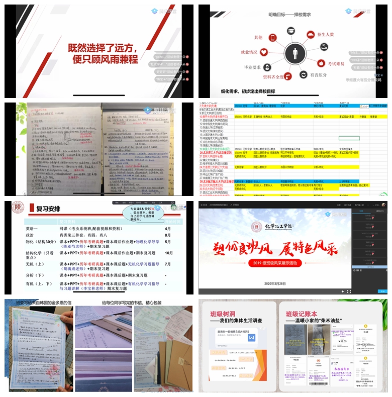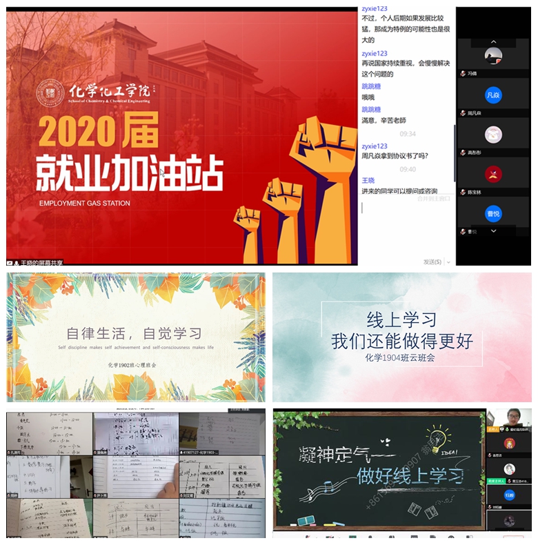 与教授面对面,为专业发展解疑。在疫情防控和在线学习的特殊时期,辅导员老师们通过问卷调研的方式了解学生在专业学习和职业规划等方面的困惑和问题,并将学院长期坚持的“教授接待日”从线下转到了线上,邀请学院领导、专家教授和班主任老师们深入班级开展在线交流活动三十余场。老师们通过网络与同学们分享自己的学习成长经历、激励大家只争朝夕、不负韶华;讲述自己经历“非典”斗争时的感人故事,勉励同学们坚定信心、共克时艰;针对近期在家上学的具体问题给出解决建议,鼓励学生克服困难、静待花开。隔屏不隔爱,看见和蔼可亲的老师们,同学们纷纷畅所欲言,分享自己在家上学的感悟和收获,也向老师们表达了遵守规定在家等待、珍惜时间严格自律的决心。