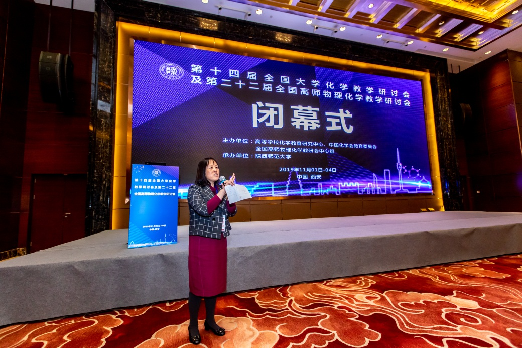 闭幕式由我校化学化工学院副院长焦桓教授主持,教育部高等学校化学教育研究中心主任段连运教授对本次会议进行了深刻总结,肯定了本次会议取得的丰硕成果,随后焦桓教授对为本次会议顺利召开做出贡献的所有人员表示了衷心感谢,并宣布本届会议圆满闭幕。