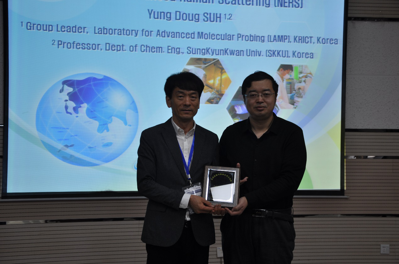 2019年11月8日下午,应化学化工学院、应用表面与胶体化学教育部重点实验室的邀请,韩国化学科技研究所/成均馆大学教授Yung Doug Suh博士访问我院,在致知楼1668报告厅为我院师生做了题为“Nanogap-Enhanced Raman Scattering (NERS)”的学术报告。刘成辉教授主持了报告会。