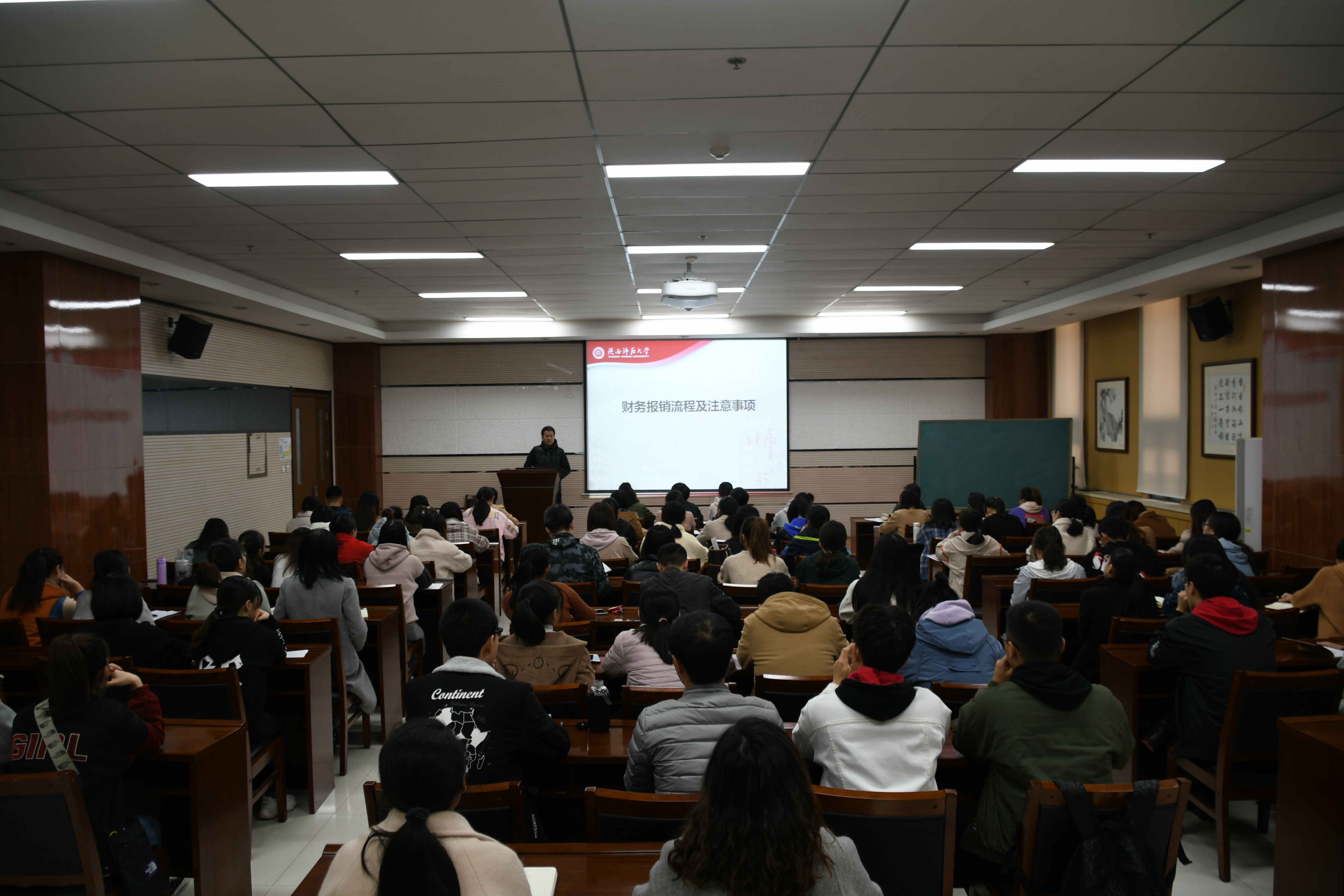 随后,学院办公室财务助理曹凯超和田潇两位老师分别从网上报销和资产管理两方面进行了详细的讲解。曹凯超就日常报销、差旅报销、借款和学术活动相关事项四部分内容详述了财务网报流程、报销政策变化以及报销过程中注意的事项;田潇就资产的建账、报废和资产核查相关流程和注意事项做了详细说明。会议结束后,学生针对平时报销过程中出现的问题与两位老师进行了讨论。此次培训会的召开,对我院师生财务报销和固定资产管理工作起到了很大的推进作用。