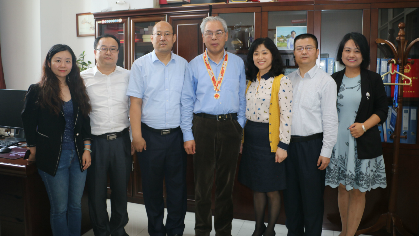 9月30日上午,学校副校长李磊、人事处处长胡波、国有资产管理处处长樊婧等一行来到学院,为我院房喻教授颁发“庆祝中华人民共和国建国70周年”纪念章。