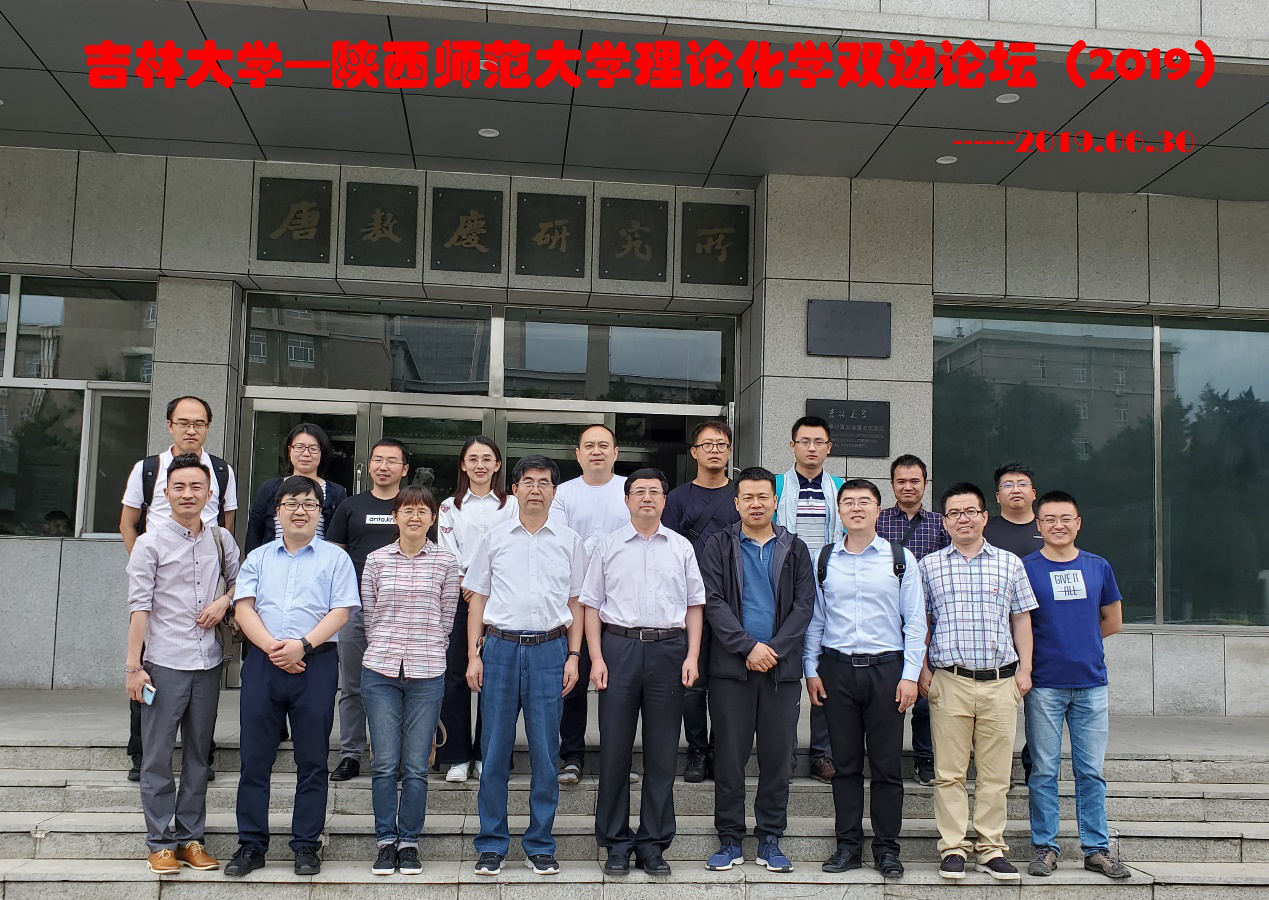 2019年吉林大学-陕西师范大学理论化学双边论坛于6月29-30日在吉林大学理论化学研究所举行。会议由吉林大学理论化学学科带头人张红星教授和我校王文亮教授任主席,我院理论与计算化学团队王文亮、刘峰毅、尹世伟教授,党静霜、王长崴副教授和王渭娜博士应邀参加,尹世伟、党静霜、王长崴与来自吉林大学、东北师范大学的理论化学工作者一道作了学术报告。