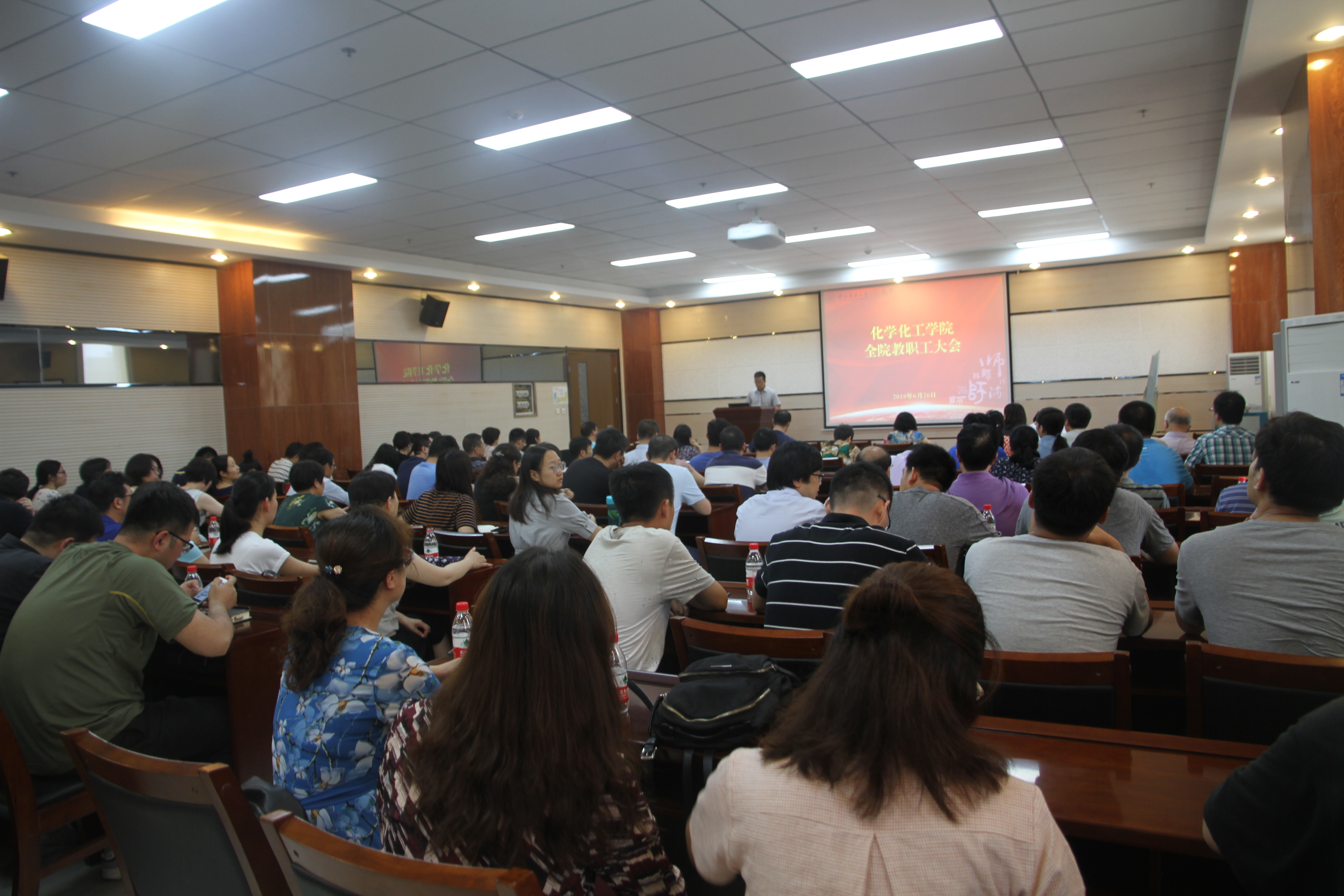 6月26日下午,我院在致知楼六层报告厅召开全院教职工大会。学院全体教师,党政领导、学院办公室、学工组办公室以及实验中心办公室人员参加了会议。会议由学院行政副院长肖新军主持。