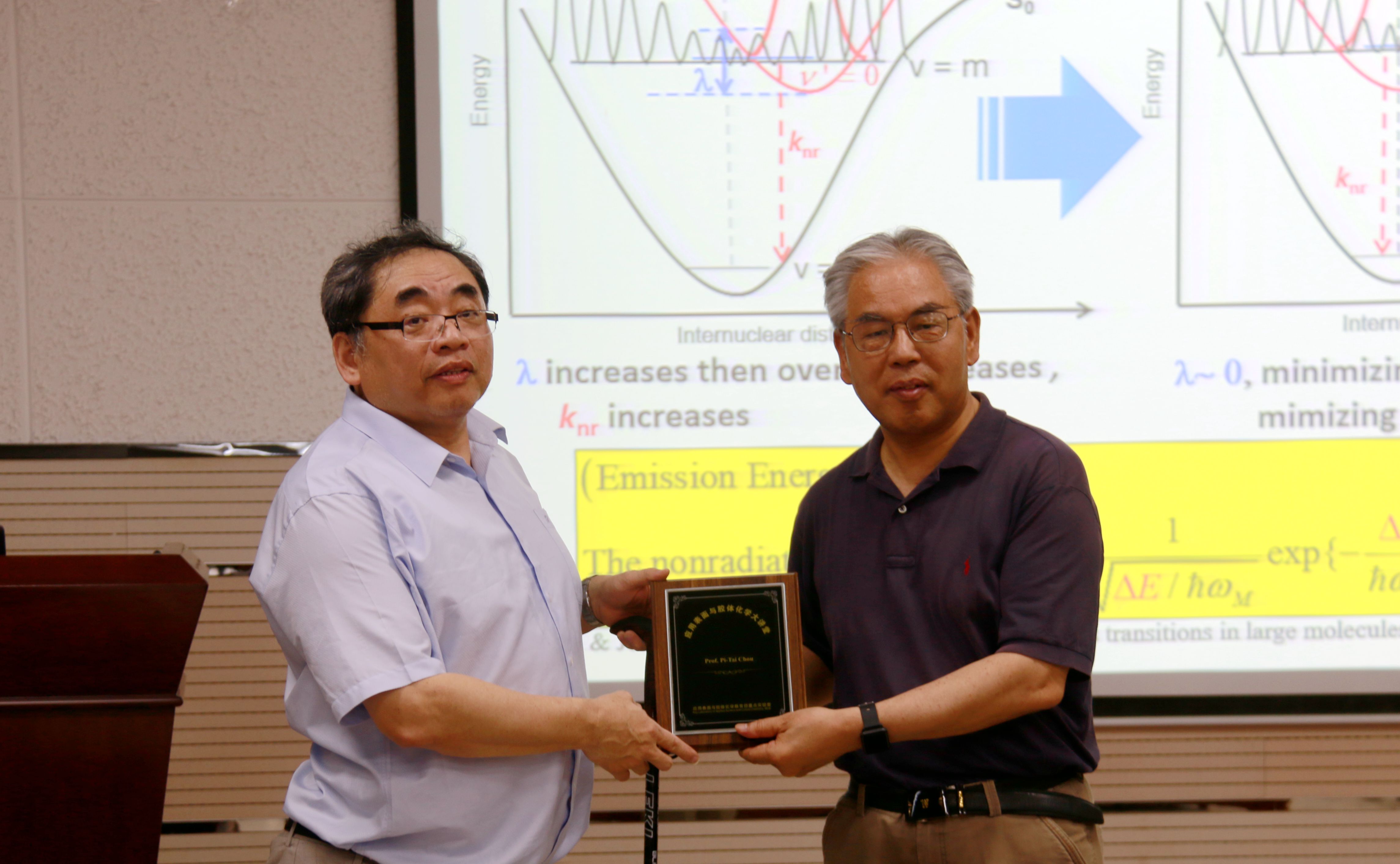 6月20日上午,台湾大学新颖材料暨前瞻元件中心主任,台湾大学杰出教授周必泰应邀访问我院,在致知楼1668报告厅为我院师生作了题为“借由激发态反应模式来调控分子材料性能”的报告。我院房喻教授、丁立平教授、边红涛教授、尹世伟教授、张成孝教授、刘静副教授、彭军霞副教授、李楠副教授、材料学院胡鉴勇教授及相关专业研究生和本科生聆听报告,报告由房喻教授主持。
