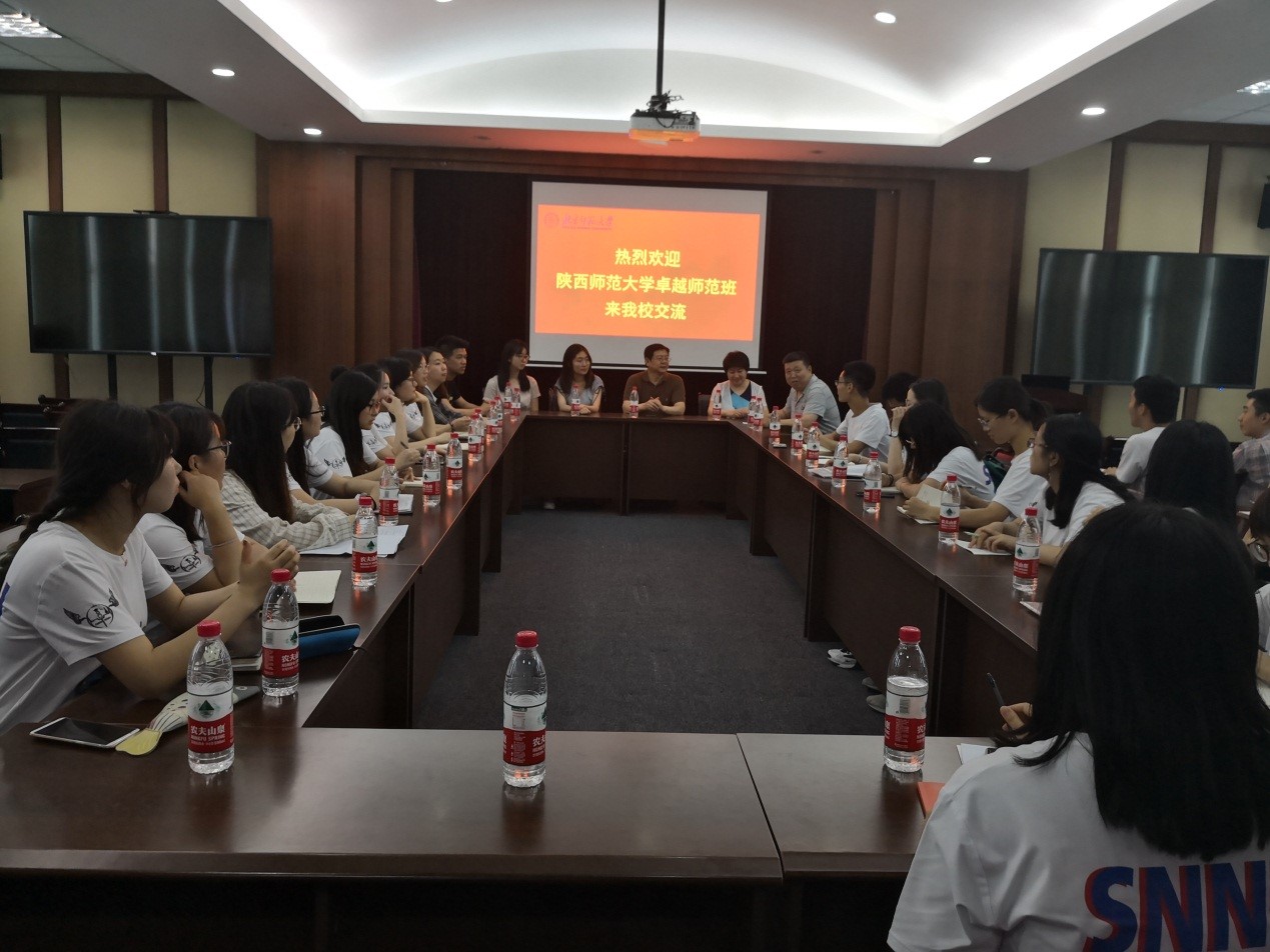 6月1日下午,见习团来到了北京师范大学,与北师大化学化工学院教学副院长魏朔教授,教育部高等学校教学指导委员会委员,北师大化学化工学院教授、博士生导师刘正平教授以及部分公费师范生代表进行交流座谈。期间,两校交流了彼此的师范生特色培养方案、教师教学技能训练课程设置和实习方案等,相互切磋学习。通过交流,同学们树立了终身学习的观念,意识到了研究型教师的必然性和重要性。