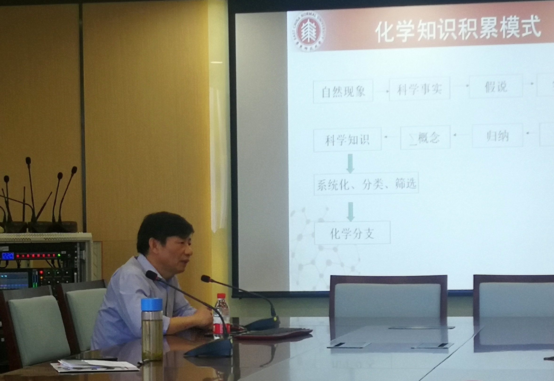 5月24日下午受游学团队的邀请华东师范大学的王祖浩教授为同学们做了一场题为“化学教育价值的重新审视”的学术报告。王教授从“什么是化学”、“为什么学化学”、“怎样学化学”三个方面对化学及化学教育进行了全方面的阐释,以大量的事实阐明化学是一中心学科,激励同学们学好化学,未来做一名优秀的化学教育工作者,为化学的传承及发展贡献自己的力量。
