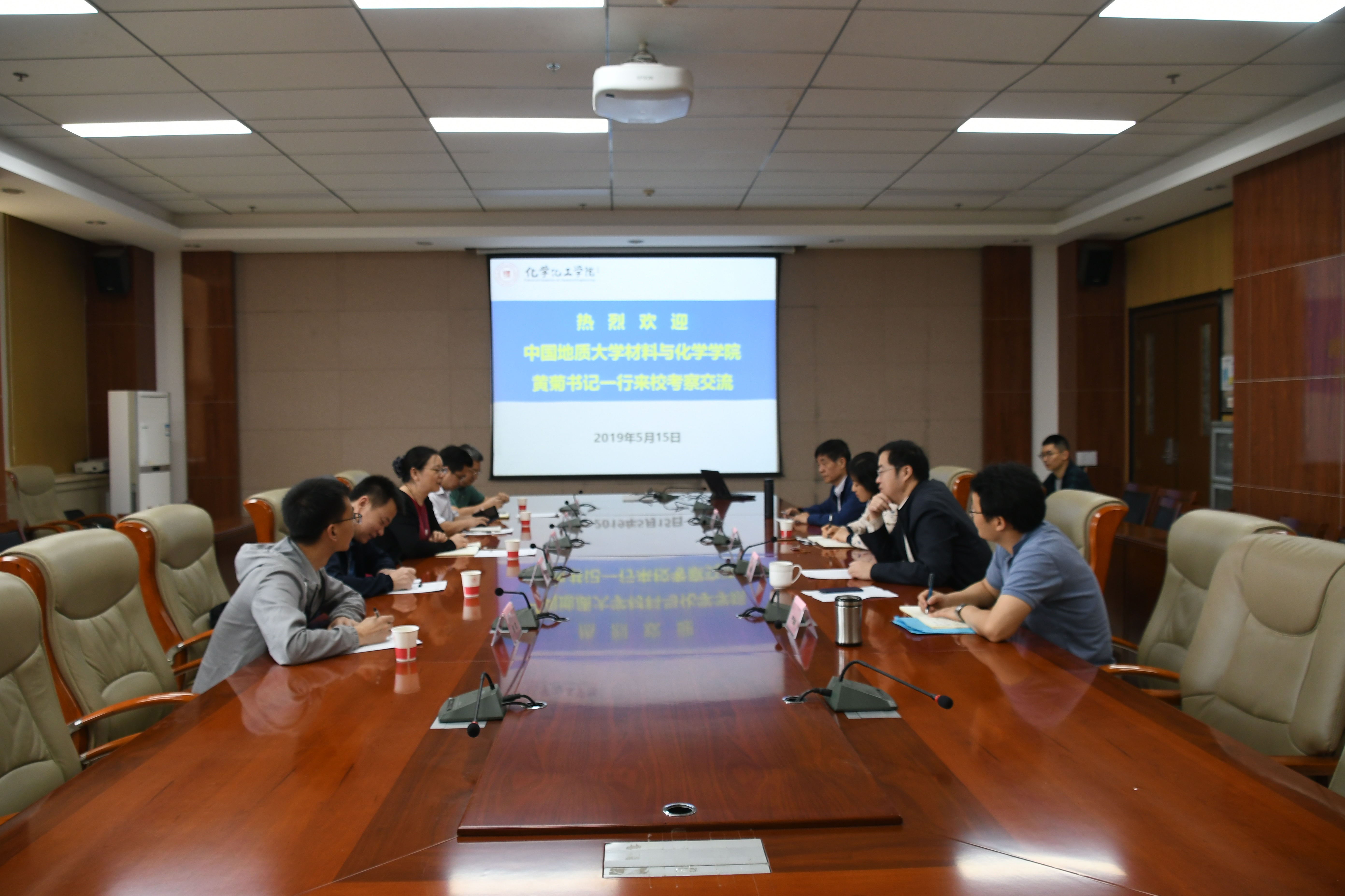 5月15日上午,中国地质大学(武汉)材料与化学学院党委书记黄菊、副院长公衍生、实验室与设备管理处副处长周俊、大型仪器设备管理办公室主任王浩、教学实验中心副主任田欢一行5人来我院考察交流。我院党委书记高玲香、副院长刘成辉、实验中心主任杨文玉、教育部重点实验室副主任严军林接待了来宾,双方就科学研究、实验室建设等方面的工作进行了座谈,刘成辉副院长主持了座谈会。