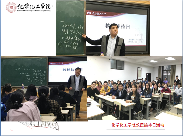 4月10日下午,2017级化学(创新实验) 1701班邀请到了我院刘太宏老师参加教授接待日活动。刘太宏老师讲述了自身发展经历,并以本科阶段发展规划的重要性为切入点,详细解答了同学们的问题。对同学们提出的疑惑,刘老师先是给予肯定,鼓励同学们乐于参与、敢于发言、善于提问;而后用他丰富的知识和广博的阅历帮助我们解答思想、心理及学业等方面存在的困惑。老师特别指出 “现在社会,单打独斗是使不得的,需要有团队合作意识,而做科研更是如此。科研工作,最需要的便是要有"阿Q精神, "铁人精神, " "在学好专业课的同时,英语能力的提升也至关重要”。老师特别强调,作为学生,不懂不会是正常的事情,那就多多向有知识,有能力,有经验的人请教,这样才能尽快成长。