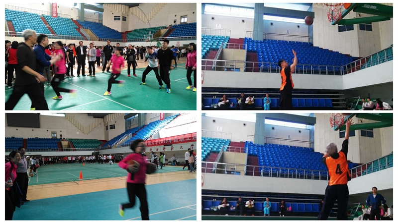 运动会上,我院教职工积极投身到了所有的6个团体项目的比赛中,老中青三代教师团结协作,奋力拼搏,取得了优异的成绩。在跳大绳的比赛中,以3分钟跳217个名列第五;在50米抱球往返接力的比赛中,以2’31’’74名列第七;在运球投篮接力的比赛中,以3’27’’18名列第七。个人项目的比赛中,教工们积极主动参赛,感受运动的快乐。校党委书记程光旭和校工会主席杜叶婷看望了参加集体项目的运动员。