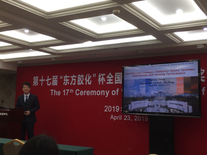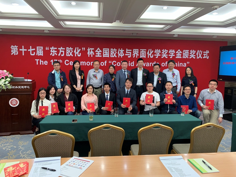 4月23日,第十七届“东方胶化”杯全国胶体与界面化学奖学金颁奖仪式在北京大学英杰交流中心举行,我院光子鼻与分子材料研究团队房喻教授课题组的博士研究生常兴茂和祁彦宇分别获得了“东方胶化杯”全国胶体与界面化学研究生优秀成果一等奖和三等奖,刘小燕副研究员受邀出席了颁奖典礼。颁奖典礼上,刘小燕作为受邀嘉宾对获奖学生致颁奖寄语,并做了精彩的邀请报告,介绍了课题组近期科研成果;常兴茂同学汇报了博士阶段的科研成果。与会嘉宾对光子鼻与分子材料研究团队所取得的研究成果给予高度肯定。