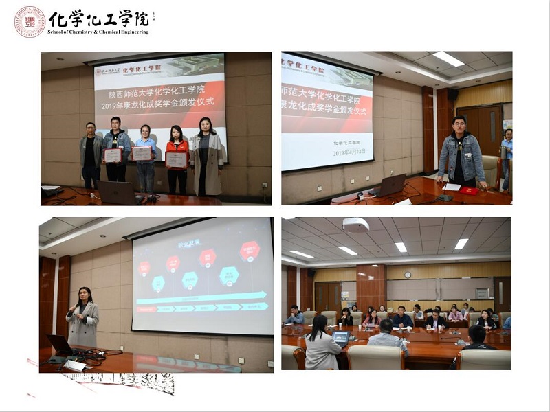 颁奖的最后,张小虎和李昕慧分别从不同角度对康龙化成(北京)新药技术有限公司的基本情况、经营理念、企业精神和人才成长模式进行了介绍。她表示,康龙化成非常注重与陕西师范大学化学化工学院的合作,希望可以为学生提供更多的实习和就业机会,也希望学院为企业输送更多的优秀人才。