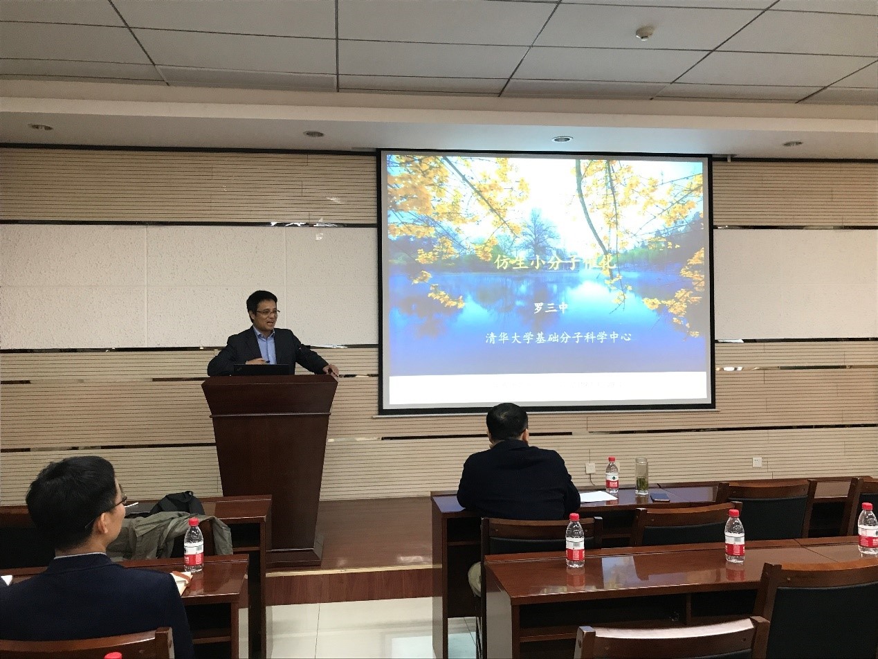 2019年3月29日上午,清华大学罗三中教授应学院邀请访问我院,在致知楼1668报告厅为我院师生作了题为“仿生小分子催化”的报告。我院李兴伟教授、魏俊发教授、石先莹教授、李超群教授、王超教授、赵玉明副教授、李高强副教授、王涛副教授、王长号副教授、孔令恒博士及李刚博士等教师及相关专业研究生、本科生聆听了报告。报告会由薛东教授主持