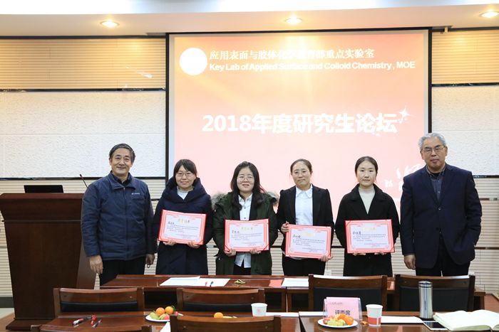 应用表面与胶体化学教育部重点实验室举办的2018年度研究生论坛于2019年1月5日在长安校区致知楼1668/1568会议室成功举行。论坛由重点实验室副主任曹睿主持,张生勇院士、房喻教授、白俊峰教授、张成孝教授、薛东教授、丁立平教授、雷志斌教授、唐艳丽教授、蒋加兴教授、张耀东教授、刘成辉教授等重点实验室150余名师生参加了本次论坛。首先,论坛主持人曹睿介绍了本次论坛的基本情况。他说,研究生论坛是重点实验室重要的例会,本次论坛共有25位博士生参加,其中24位是2017级在读博士生,1位是导师推荐的优秀博士生,论坛报告分为两个会场同时进行。本次论坛邀请了张生勇院士参会并讲话,张院士勉励参会学生珍惜时间,勤勉奋斗,努力实现自己的科研理想,并预祝论坛取得圆满成功。