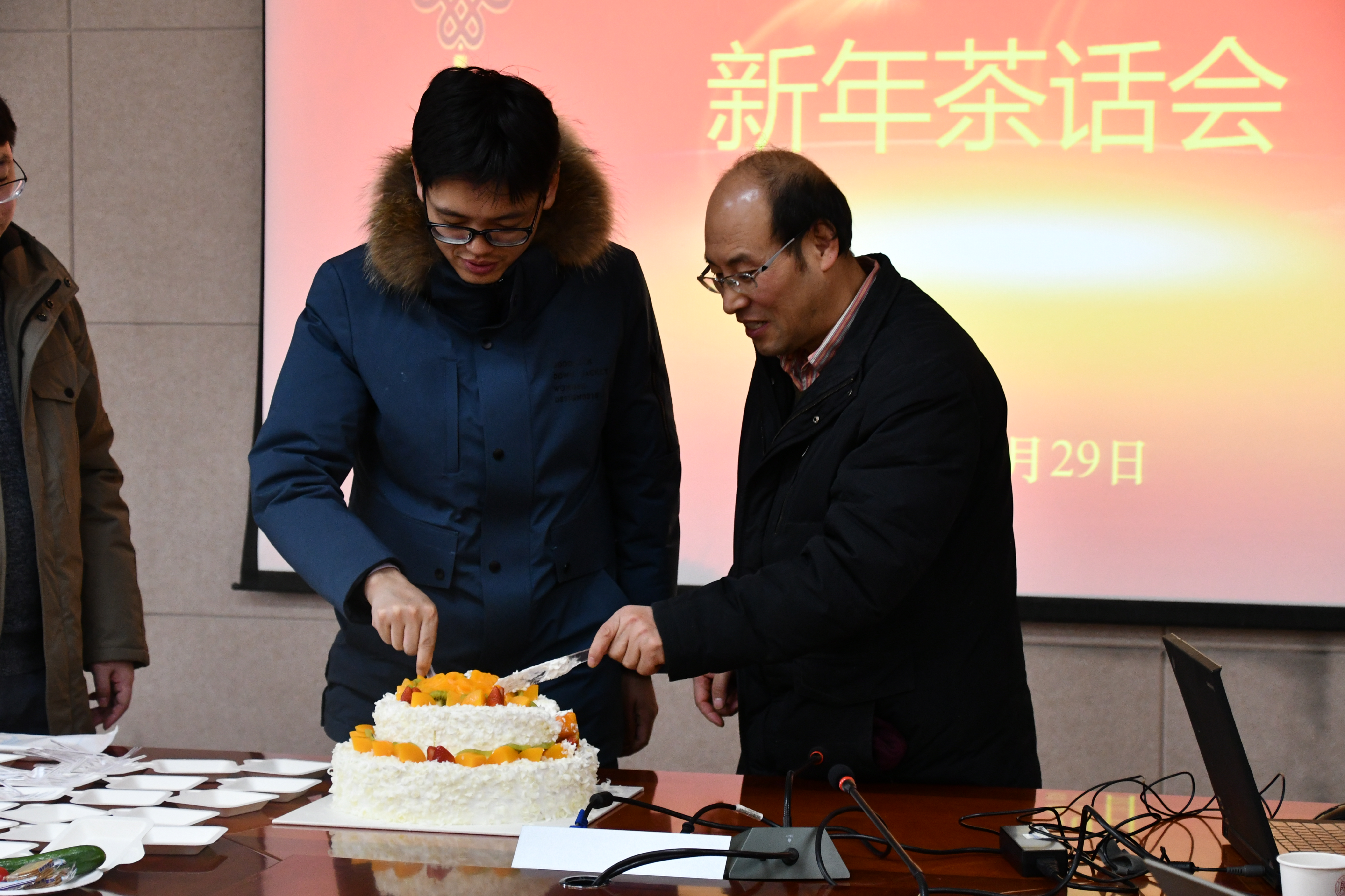 茶话会开始,丁立平、刘成辉、肖新军、杨文玉分别汇报了今年以来研究生管理、科研管理、行政管理、大型科研仪器平台管理等分管领域工作的进展。李保新回顾了过去一年来学院在基金申报方面的成果,就2019年度基金申报的相关工作作了说明。他指出,国家自然科学基金的申报即将开始,各位老师在申报时要注意与往年的不同点,科技处将一如既往的支持学院的发展,全力协助大家申报基金项目。张国防汇报了2018年工会费用的使用,并就2019年工会活动的举办征求了大家的意见。