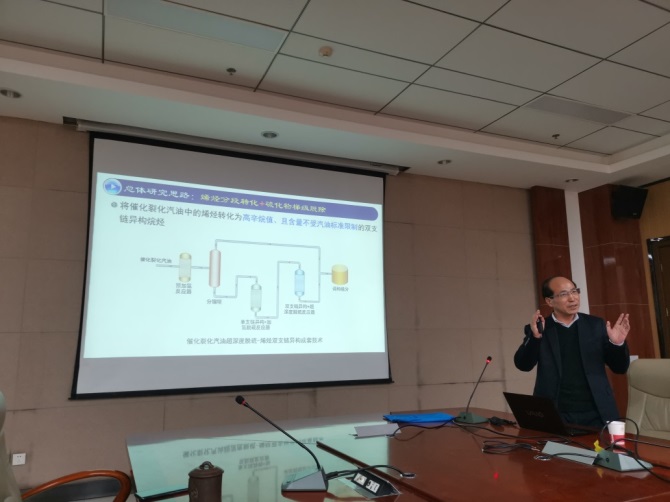 应刘忠文教授邀请,福州大学石油化工学院院长鲍晓军教授于12月14日到我院进行学术交流,并在致知楼1568会议室作了题为“催化裂化汽油超深度加氢脱硫-烯烃双支链异构工艺及系列配套催化剂的开发及应用”的学术报告。报告会由刘忠文教授主持,我院相关教师和研究生50余人参加了报告会。