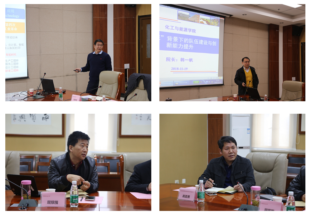 刘忠文教授简要介绍了新工科建设的背景、内容及我校化工类学科的现状,与会专家学者从不同角度各抒己见,进行了热烈和富有成果的讨论。华南理工大学王海辉教授以“化工膜分离和膜反应器”为例,认为现代化工过程应突破传统思维,结合节能、环保、绿色等特点,融入化工类人才培养理念。华东理工大学/郑州大学韩一帆教授从学科建设的意义、目标、方法以及挑战等角度,认为新工科建设为师范院校化工类学科建设提供了新的机遇,与区域经济有机融合是新工科建设的关键,应选对方向,加强平台和人才队伍建设,形成特色。上海交通大学罗正鸿教授简要介绍了上海交通大学化工学科特点,分享了如何以小而精取胜的经验,提出应当将化工基础和化工科学问题紧密结合,提升学生解决问题的能力。重庆大学魏子栋教授、陕西科技大学马养民教授、西北工业大学张秋禹教授、西安石油大学屈撑囤教授就化工类学科建设与电子、轻工、石油等行业特点如何有机结合,分别从理论和实践的角度进行了精彩论述。最后,延长集团碳氢高效利用技术研究中心高亚男副总工,从人才消费者的角度,对师范院校化工类新工科建设提出了宝贵的建议。本次会议的成功举办,对促进我校非师范专业的人才培养和稳步推进化工等新工科建设具有重要的意义。