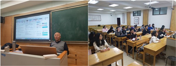 10月16日和23日,2017级化学卓越班两次邀请到了李宝林教授参加教授接待日活动。第一次活动以“黑板字对于师范生的重要性”为主题,李老师强调了粉笔字书写的要点,强调同学们应拥有好的品质,激励大家努力成为一名卓越教师;第二次活动以“中外文献检索”为主题,李老师介绍了陕西师范大学丰富的网络数据库资源,讲述了文献检索能力的重要性,介绍了文献检索的具体方法操作,并向同学们推荐了相关的杂志文献。
