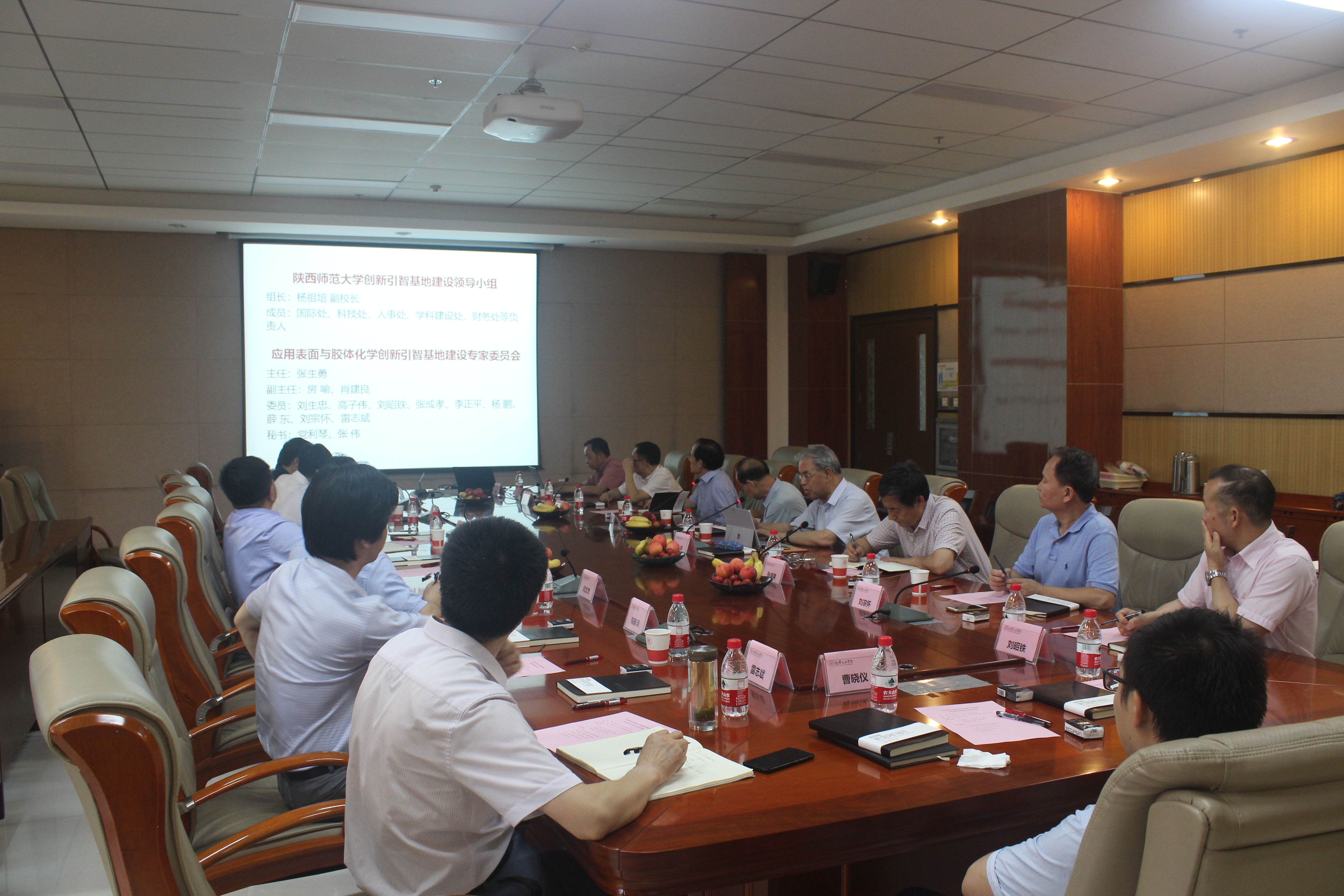 2018年6月26日,“应用表面与胶体化学创新引智基地”专家委员会第四次会议在化学化工学院1568会议室召开。国际合作与交流处处长徐峰、科技处处长吴晓军、副处长李保新、财务处处长刘继波、学科建设处副处长闫文杰等应邀出席了会议。引智基地专家委员会主任张生勇院士、副主任房喻教授、肖建良教授以及引智基地专家委员会委员刘宗怀教授、张成孝教授、刘生忠教授、刘昭铁教授、薛东教授、陈新兵教授、雷志斌教授、杨鹏教授等共计19人参加了会议。会议由专家委员会主任张生勇院士主持。
