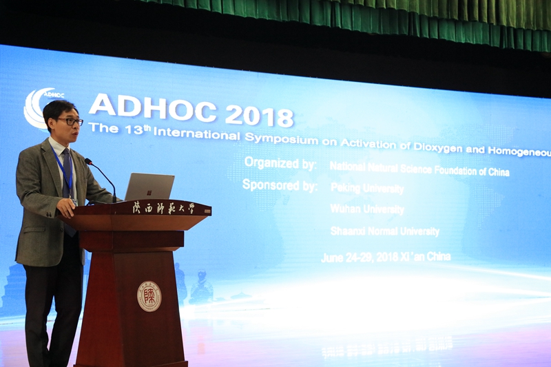 2018年6月25日,由国家自然科学基金委员会主办,北京大学、武汉大学和陕西师范大学承办的第十三届氧气活化和均相氧化催化国际研讨会(The 13thInternational Symposium on Activation of Dioxygen and Homogeneous Oxidation Catalysis(ADHOC 2018))在陕西师范大学长安校区新勇学生活动中心隆重召开。