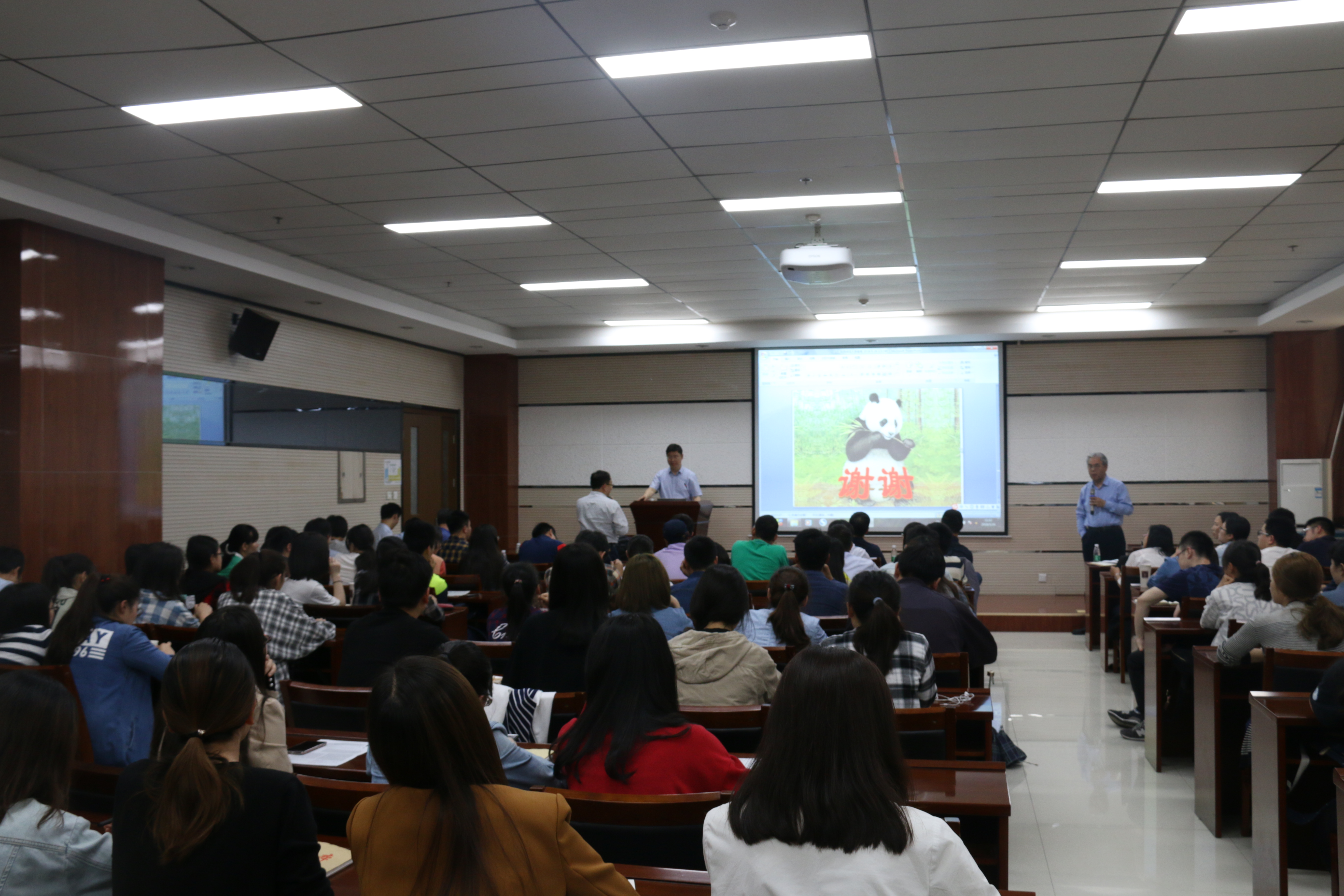 刘忠范院士系统介绍了其领导的研究团队在石墨烯领域一系列开拓性和引领性的工作,并对石墨烯的发展前景作出了展望。整个过程轻松愉快,充满了学术氛围,赢得了数次掌声。报告后,刘忠范教授与师生进行沟通交流,耐心的解答师生提出的问题,并鼓励学生找到自己的兴趣,好好做科研。
