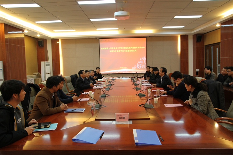 为了进一步加强非师范专业建设,日前,化学化工学院院在致知楼1568 会议室举行了应用化学专业实习基地签约仪式暨兼职教授聘任仪式。延长石油集团公司碳氢高效利用技术研究中心主任李大鹏、党委书记王明峰、总工程师王宁波、副主任霍鹏举、副主任高亚男、石化所所长黄传峰、办公室主任王永娟、陕西师范大副校长党怀兴、教务处处长李贵安、人事处副处长樊婧、化学化工学院党委书记高玲香、副院长焦桓、副院长肖新军、刘忠文教授以及碳氢中心科研人员代表和我院应用化学专业的部分教师出席签约仪式。仪式由焦桓主持。