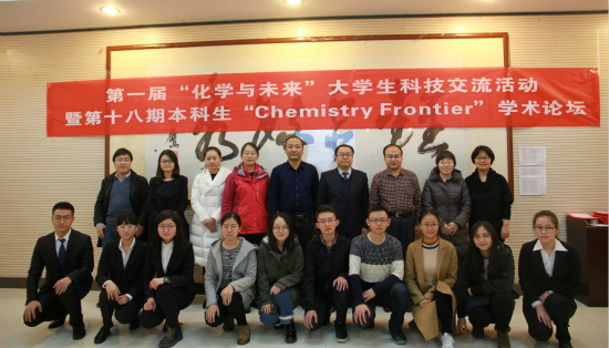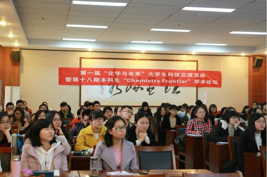 为贯彻落实笃学班学生培养计划,促进笃学班学生与不同学校化学专业本科生的交流,进一步加强笃学班学生综合素质的培养,激发笃学班学生的科研热情,践行“包容务实,创新精进”的院训风尚,2017年11月29日下午,学院举办了第一届“化学与未来”大学生科技交流活动暨第十八期本科生“Chemistry Frontier”学术论坛。应学院副院长焦桓教授邀请,西北大学化学与材料科学学院王文渊教授、欧阳湘元老师和王梦姣老师参加了本次论坛。我院院长薛东教授,党委副书记王晓老师,漆红兰教授,刘峰毅教授,徐玲副教授和团委书记陈钿老师出席了本次活动。