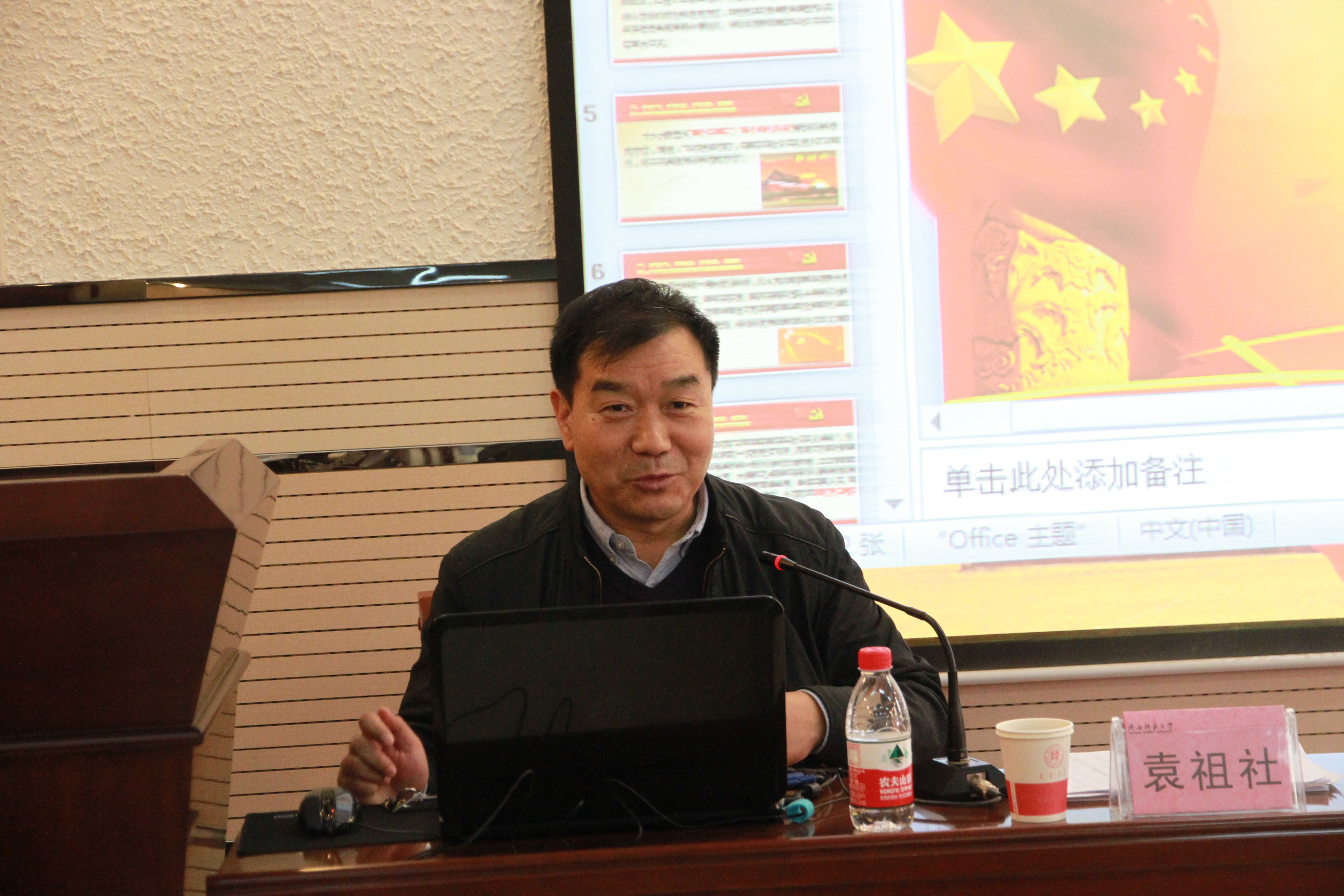 袁祖社教授以“改革优先,发展为本,民生至上----深刻理解十九大报告的精神实质”为题,从中国共产党执政的合法性谈起,分别从改革、发展、民生三个维度为我院师生党员深入解读了中央精神。