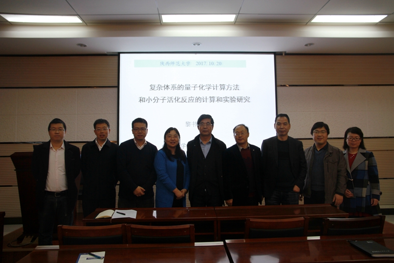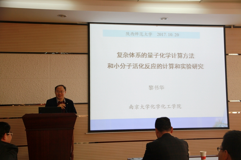 2017年10月20日下午,南京大学黎书华教授应邀访问我院,在致知楼1668报告厅为我院师生作了题为“复杂体系的量子化学计算方法和小分子活化反应的计算和实验研究”的精彩报告。白俊峰教授、王文亮教授、张聪杰教授、尹世伟教授、杨鹏教授、刘峰毅教授、王渭娜等教师及相关专业研究生、本科生聆听了本次报告。报告会由白俊峰教授主持。
