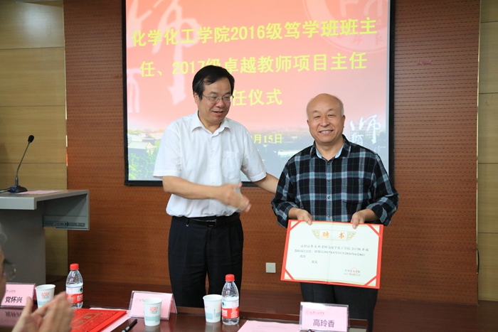 ——化学化工学院举行2016级笃学班班主任、2017级卓越教师项目主任聘任仪式