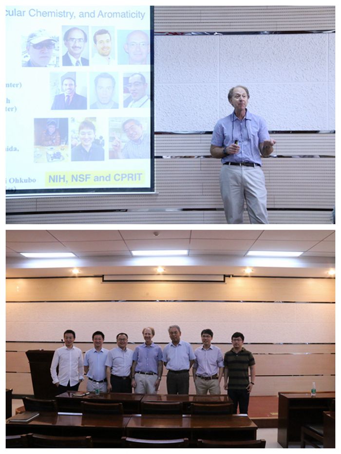 2017年5月27日上午,德克萨斯大学奥斯汀分校Jonathan L. Sessler教授应邀在我院致知楼1668报告厅为我院师生作了一场题为“Expanded Porphyrins: A personal Journey”的精彩报告。报告会由曹睿教授主持。我院薛东院长、房喻教授、张伟副教授、郑浩铨副教授等教师及相关专业研究生、本科生聆听了报告。