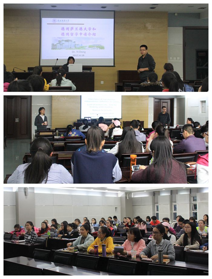 为了让同学们了解德国大学的基本情况和德国留学申请的注意事项,2017年4月16日19:00,化学化工学院特邀请德国萨兰德大学的董奕教授在崇鋈楼二层闻道堂做了报告,并与同学们进行了交流,参加本次交流活动的有化学化工学院15、16级化学卓越班和15级笃学班的同学们。