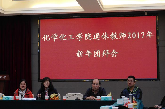 1月20日上午,化学化工学院在雁塔校区启夏苑二层多功能厅召开2017年退休职工新春团拜会。学院党政领导和工会主席、副主席及工会委员参加了团拜会。会议由院党委书记高玲香主持。