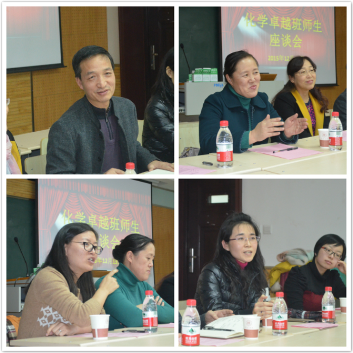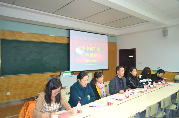 12月13日晚七点,2015级化学卓越班师生座谈交流会在雁塔校区5106教室举行。出席座谈会的嘉宾有化学化工学院副院长焦桓老师、化学化工学院副院长李保新老师、化学卓越班项目主任陈亚芍老师、魏灵灵老师、赵娜老师、综合秘书张蕾老师。2015级化学卓越班全体同学参加,理工科基础教学部辅导员龙卓华老师担任主持人。