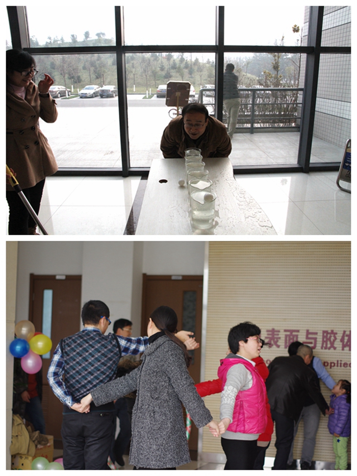 比赛开幕式上,学院党委书记高玲香教授在致辞中向大家介绍了举办此次活动的初衷,并对到场参与活动的老师和同学们表示热烈的欢迎。她指出,此次联谊会一是要表达同学们对老师们一年来辛苦工作的感激,二是希望借此活动传达学院领导和老师们对同学们的亲切关怀。此次联谊会以乒乓球比赛为主体,另附加了趣味娱乐项目,让师生们放松了身心,增进了交流。在乒乓球比赛中,老师与同学默契配合,学生出现失误时老师轻拍其肩膀给予鼓励,获得分数时,学生老师相互拥抱欢呼,现场气氛紧张又不失欢乐,到处洋溢着老师和同学们的欢声笑语。一旁观战的同学们不停地用手机拍照,都希望留下这一个个美好的瞬间。与此同时,游戏环节也有声有色地同步进行。“毽舞飞扬”游戏中,师生共踢毽子,笑声不断;“一圈到底”游戏中,师生手拉手围成圈协同合作,在呼啦圈中穿梭;“飞镖掷准”、“猜灯谜”和“一飞冲天”游戏中也是参与者众多,现场热烈而融洽。
