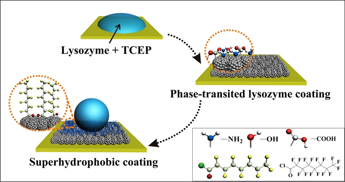 针对这一挑战,在国家自然科学基金委的资助下(基金号:21374057, 51303100),陕西师范大学“光子鼻与分子材料”创新团队的杨鹏教授等对天然生物大分子介导的材料表界面功能化进行了深入系统的研究,首次提出了通过操控溶菌酶相转变过程来实现其在各种材料表面的可控组装与黏附,从而提供一种普适和稳定的功能性涂层。由于溶菌酶具有丰富的相变行为、极低的价格、广泛的来源、较其他蛋白质更加高的稳定性、通过FDA批准的无毒性以及良好的水溶性和加工性,因此开发基于溶菌酶的功能性界面材料对于发展绿色、环保和可持续发展的材料新体系具有重要意义。