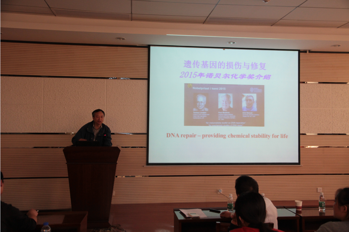 10月16日下午2:30,化学化工学院柴永海教授和曾成鸣教授用精彩的报告分别为同学们介绍了2015年的诺贝尔生理或医学奖和诺贝尔化学奖。