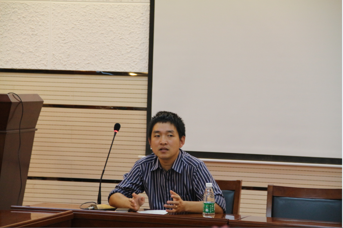 在与2013化学2班同学交流的过程中,江金强教授首先对同学们预先准备的问题作了解答,尤其是针对同学们提出的师范生就业、考研以及教师职业定位等方面的疑虑做出了详细的解答。江金强教授向同学们强调,师范生考研与否,一定要根据自身情况,再去选择,而一旦做出选择,就应该坚持。同时,江老师以自身经历告诉同学们,人生面临很多选择,有时候需要顺其自然,希望大家不要因考虑过多而造成太大压力。接下来,江金强教授就学院近期开始的研究性实验,针对大家产生的困惑和思考做了说明,详细指导了如何查阅文献,如何处理实验过程中遇到的科研难题,如何处理好与实验室研究生的关系以及如何与导师进行沟通与交流。江金强教授建议学们先从中文文献入手,了解背景知识,循序渐进,更要意识到实验是中学老师培养中学生创新能力的重要抓手,因此,研究性实验对培养一名优秀中学教师具有重要的作用。